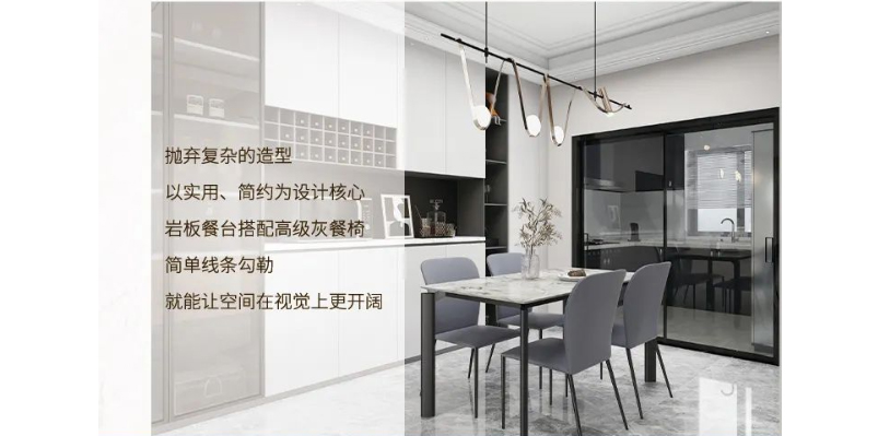 岩板餐台搭配高级灰餐椅