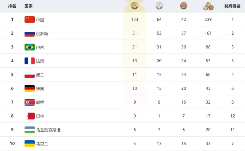 距离第七届世界军人运动会结束已经半月有余,十天的赛程虽告一段落,但属于国人的骄傲仍然激荡于胸。133金、64银、42铜,最终中国以遥遥领先之势夺得奖牌榜榜首。