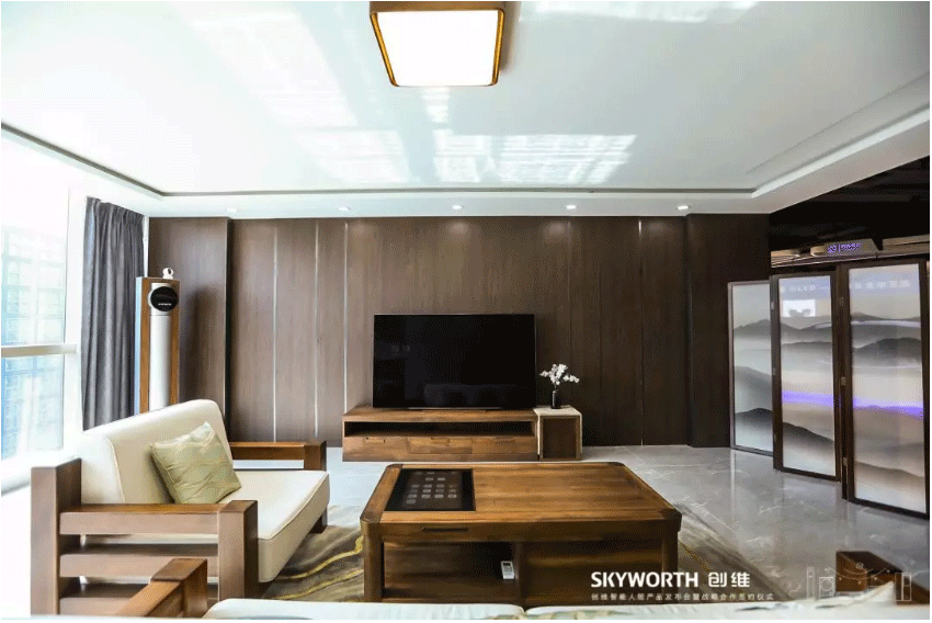 创维集团总工程师吴伟先生分享智控中心产品详情,新品采用家具形态,为以茶几桌面为依托的家电控制,系统性开放操作平台 星辰影视高清,同时满足购物,娱乐,办公,教育等多场景所需的智能人居控制系统, 。