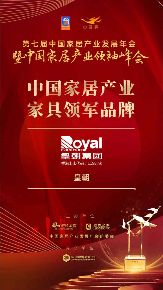 喜报!皇朝荣膺大雁奖“2019中国家居产业家具领军品牌”!