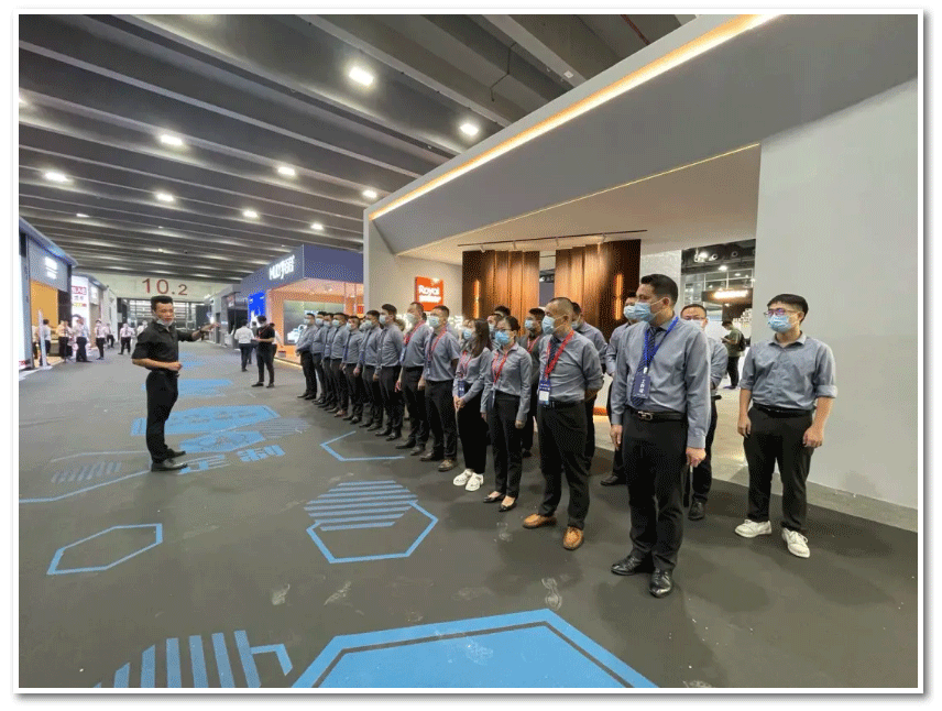 展会发轫之始,皇朝的业务精英们在执行老师的引导下,开始了战斗之前的士气打造。