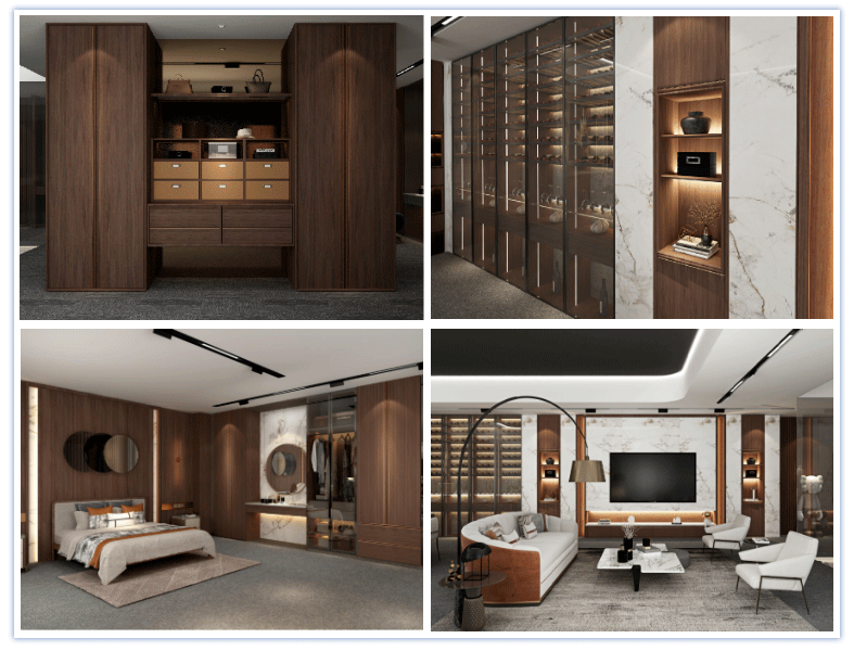 皇朝定制发展至今,早已不是以单品类独立呈现,而是搭建了全屋家具产品体系。通过全屋定制衣柜,定制橱柜,木门,护墙板,软体沙发,软体睡眠等,实现全屋家具一站式配齐体验。