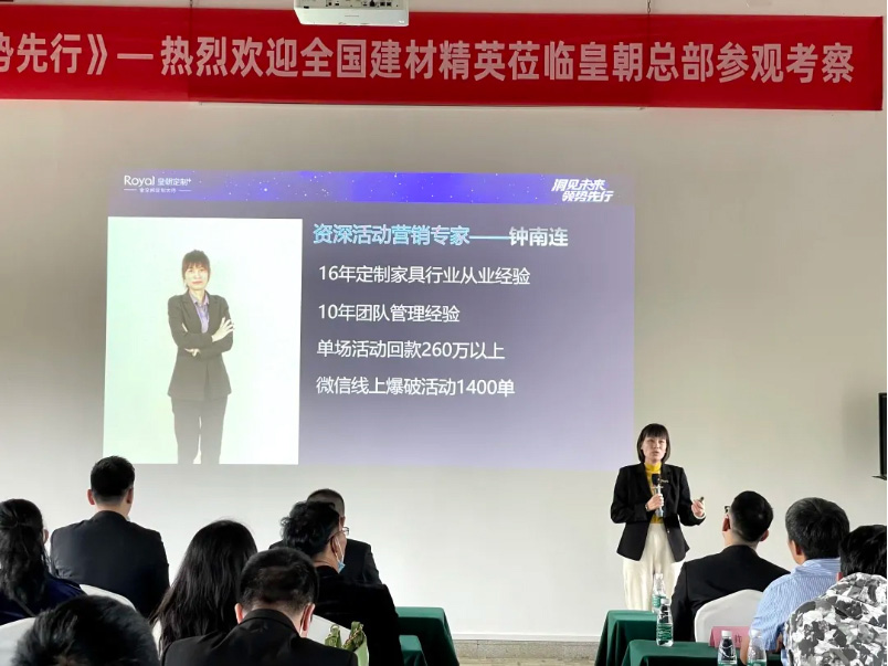 皇朝定制渠道开发部总监邹总为到场创业者公布最新加盟政策,引领建材行业创业者精英创业激情。