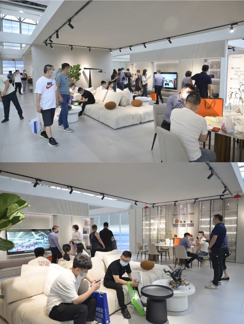 展厅内所呈展的玛洛系列,集时尚与高级于一身,十分符合年轻人的消费偏好,其相应搭配的成品家具,造型别致,个性满满,空间配套性极强。