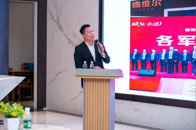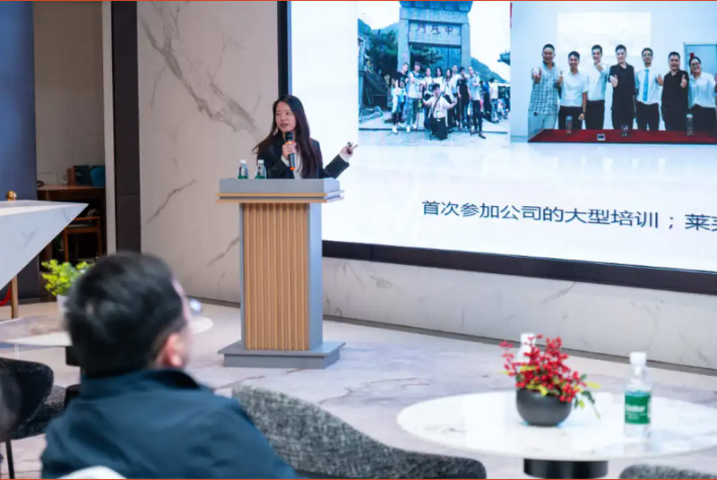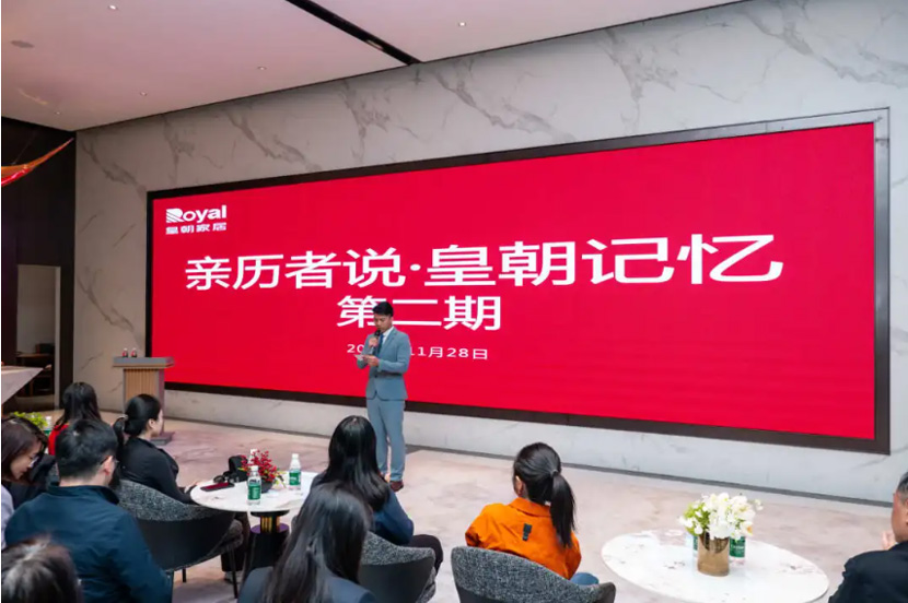 裕发工装家具销售业务三组营销主管陈瑶分享了公司培养成长的经历,讲述了在山东莱芜专卖店销售近200万业绩、将折扣店打造成年销售千万的故事,传递“服务只是起点,满意没有终点”的皇朝服务理念。