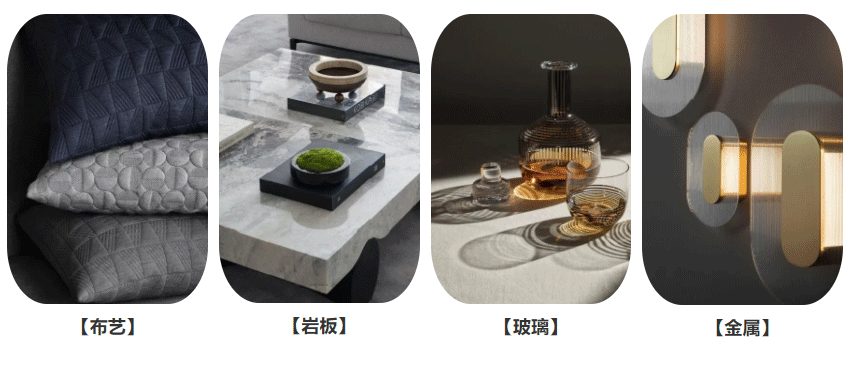 布艺、岩板、玻璃、金属米奢将这些属