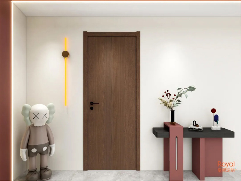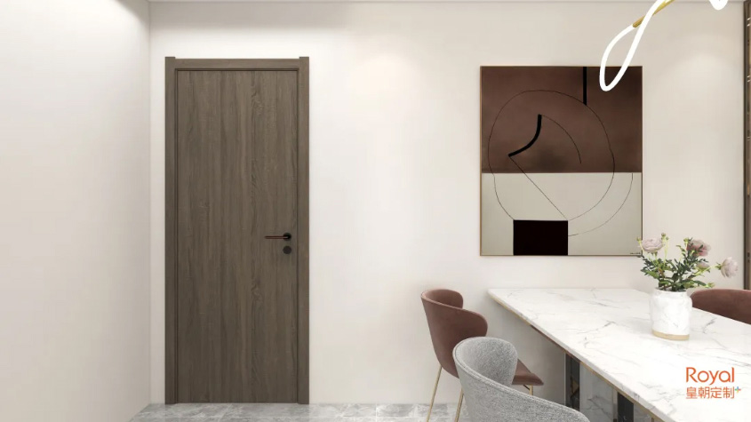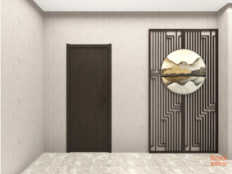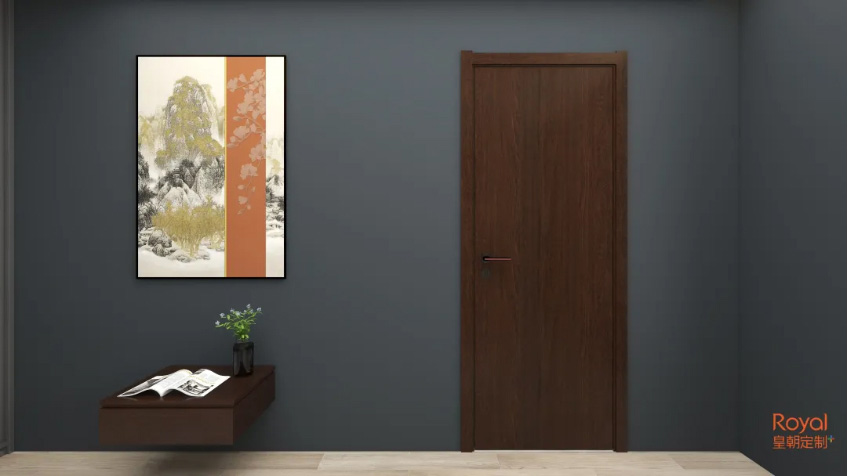 这是一款有着沉稳色彩的木门,有着中式的神韵,却有着现代风的简约格调,整体给人以低调大气的视觉效果。