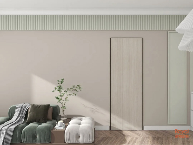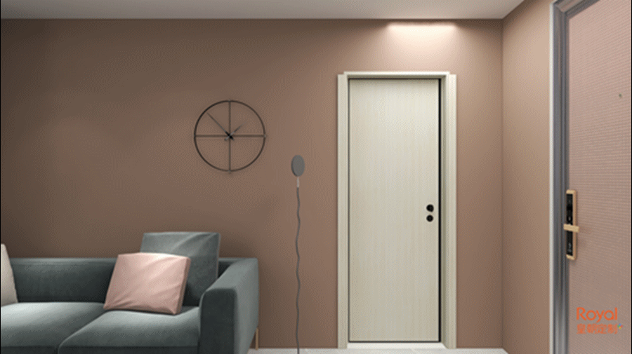 该款木门花色色调更浅淡,纯度偏低,视觉效果宁静,是一种接近灰色但却有着不一般效果的花色。