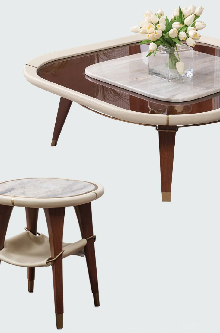 实木、皮革、玻璃、大理石