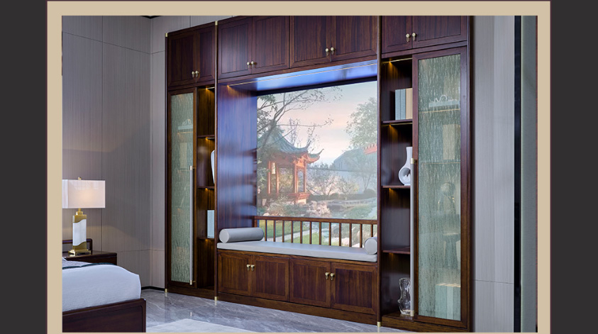 卧室保持原木色主基调,优雅的黑檀烘托出静谧的休憩氛围,皮质的包面与黄铜的点缀则提升了整体视觉温度 星辰影视高清,飘窗柜设计辟出一方休闲与收纳的空间,闲时临窗而坐,或开卷品鉴,或品茗悟道,或极目远眺,感古意悠然,雅韵四溢, 。