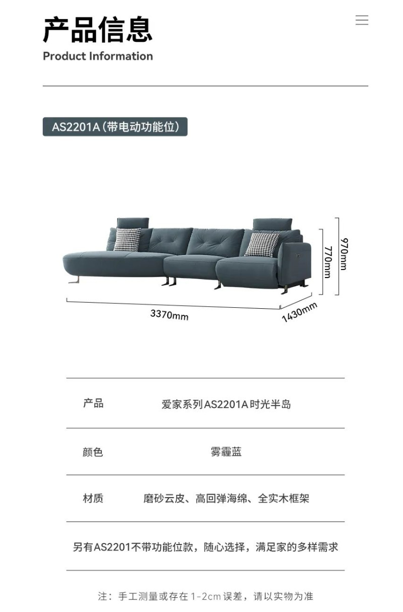 *AS2201A时光半岛沙发标配为磨砂云皮