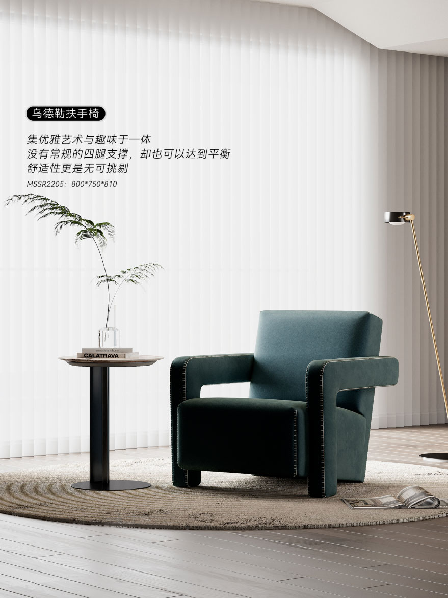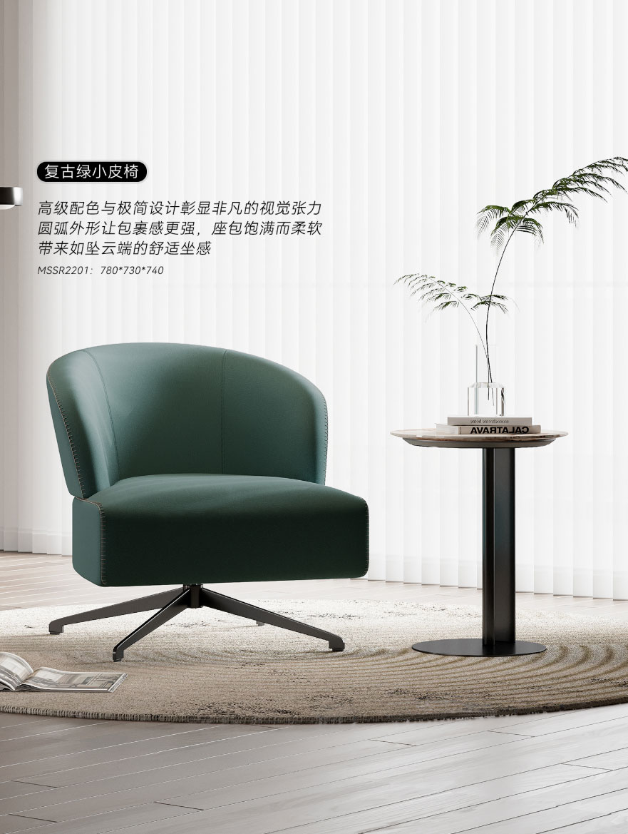 ③ 复古绿小皮椅:高级配色与极简设计彰显非凡的视觉张力;圆弧外形让包裹感更强,座包饱满而柔软,带来如坠云端的舒适坐感。