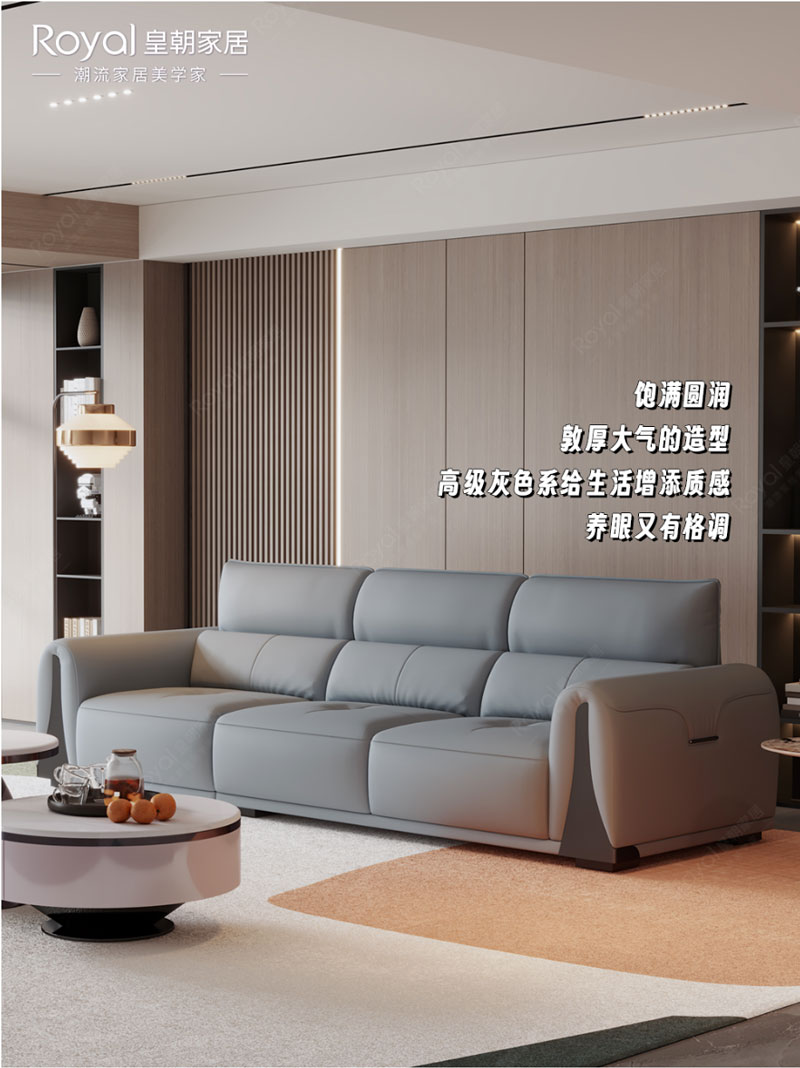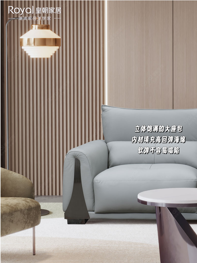 饱满圆润、敦厚大气的造型是一大特点,高级灰色系给生活增添质感,养眼又有格调;分段式靠背搭配低矮坐面,带来满满的包裹感,给予人最舒适的依靠。