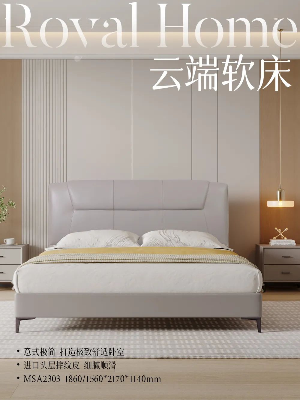 进口头层牛皮大床,米奢系列MSA2303真皮软床, 星辰影视.