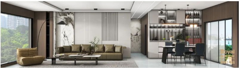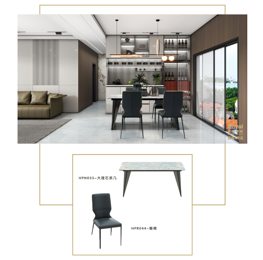餐厅,不仅提供美食的享受,更是一处细致考究的艺术展示。酒柜作为餐厅空间的亮点,让您尽情展示和收藏美酒。轻奢风格的大理石餐桌椅巧妙搭配,赋予餐厅更多的观赏性。这不仅仅是一个用餐的场所,更是一个展示品味与品质的艺术空间,让您在品尝美食的同时,感受到奢华与温馨的融合。