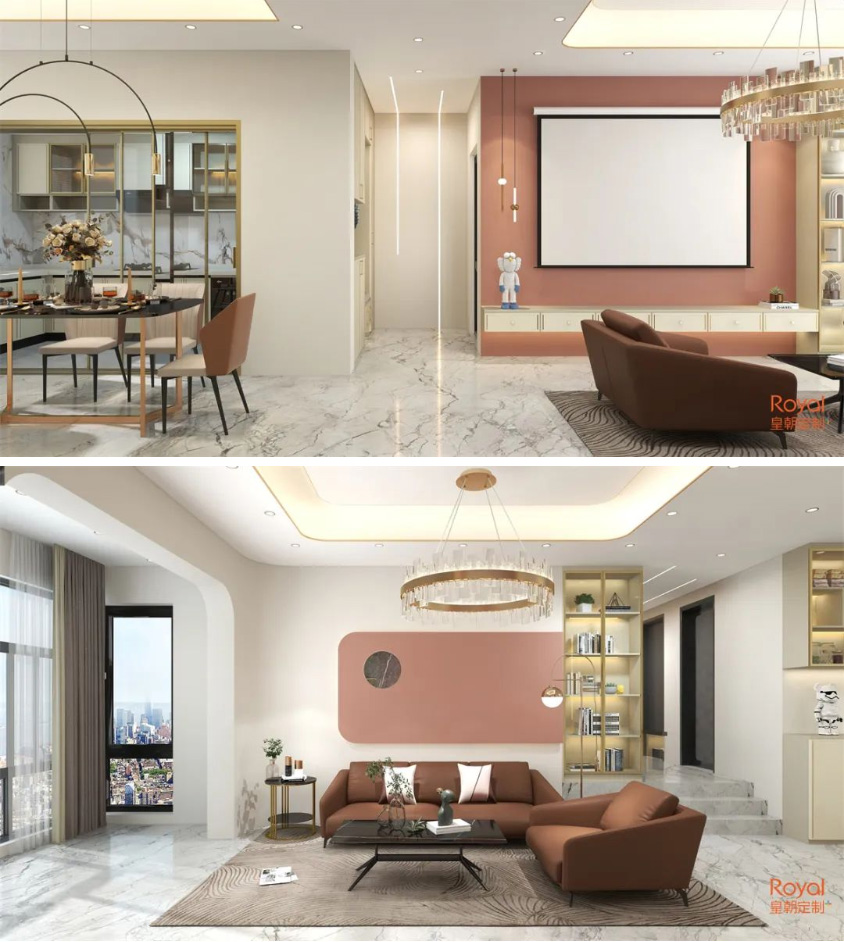 带点奶油般温和的香槟金点缀以少女心爆棚的蔷薇粉色,亮丽的灯光系统 星辰影视在线,外加造型简约的真皮沙发,这方天地朝气勃勃,亦不失高级感, 。