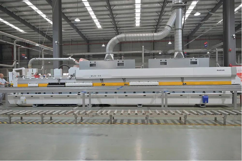 在专属封边带上先预涂加工一层具有激光吸收功能的聚合物。当进行板件封边加工时,封边机激光发生器产生的高能量激光束聚集到封边带上,将封边带功能性胶层瞬间激活,然后通过封边机压轮机机黏贴到板材上,再经过精修、跟踪倒圆等工序,完成封边作业流程,从而达到无缝胶合的效果。